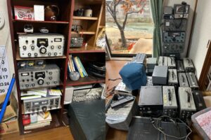 リビングも、廊下も、階段も、4LDKの部屋という部屋に無線機が置かれており、プリアンプ・安定化電源・電鍵・アンテナなどの周辺機器に加え、オーディオやミニカー・プラモデルといった趣味の品まで含めると、2トントラック2台分の量になりました。