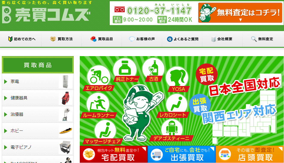 売買コムズは、家電・家具・楽器・ホビー用品・工具・厨房機器など幅広いジャンルの中古品を全国から買取するネット型リユースショップです。