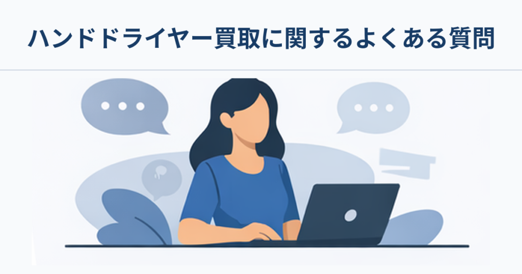 ハンドドライヤーの売却をご検討中の方が抱えやすい疑問や不安について、Q&A 形式で詳しくお答えします。事前にこれらの情報をご確認いただくことで、お問い合わせの手間を省いて、より安心して買取サービスをご利用いただけますよ。
