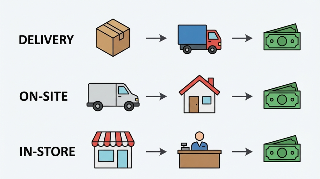 買取方法には「宅配」「出張」「店頭持込」の3つがあります。